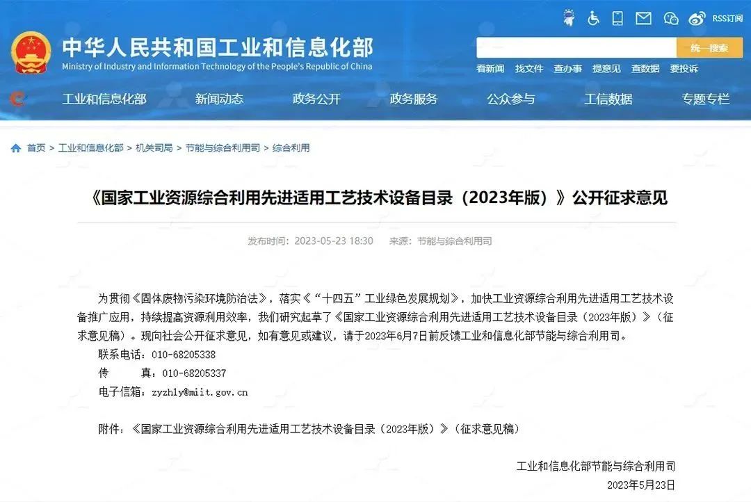 為貫徹落實(shí)《中華人民共和國固體廢物污染環(huán)境防治法》,加快工業(yè)資源綜合利用先進(jìn)適用技術(shù)裝備推廣應(yīng)用,持續(xù)提高資源利用效率和水平,工業(yè)和信息化部、國家發(fā)展和改革委員會(huì)等共同編制了《國家工業(yè)資源綜合利用先進(jìn)適用工藝技術(shù)設(shè)備目錄(2023年版)》。