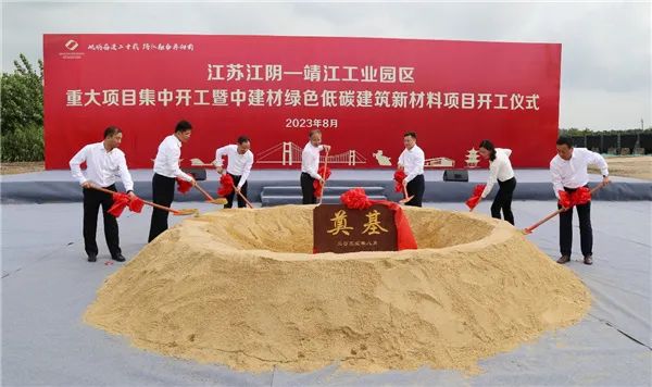 2023年8月14日上午,江蘇江陰-靖江工業(yè)園區(qū)重大項(xiàng)目集中開工暨中建材綠色低碳建筑新材料項(xiàng)目開工儀式在華東材料江蘇永益華元物流有限公司項(xiàng)目建設(shè)現(xiàn)場(chǎng)舉行。