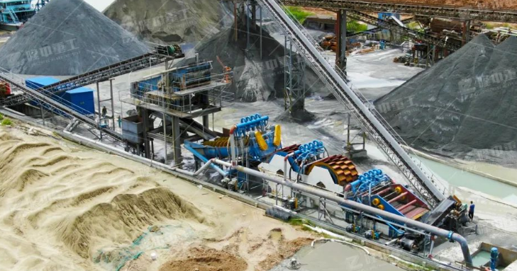 原料經過清洗可有效的清除機制砂中的泥土和石粉,使得機制砂級配更合理、細度模數可調、品質、質量也得到了大大的提升。