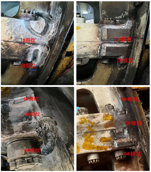 美卓技術服務團隊為鹿鳴礦業(yè)的第三方球磨機大齒輪的維修進行準備工作2023年8月,通過磁粉檢測與超聲波探傷檢測后,美卓對鹿鳴礦業(yè)所應用的兩臺國產(chǎn)品牌球磨機進行了全面的診斷;隨后利用微弧焊接技術,共計完成對1#球磨機大齒輪存在的9處裂紋,以及對 2#球磨機大齒輪3處裂紋的修復工作。經(jīng)第三方機構(gòu)檢測,修復效果良好,各項指標均達到正常使用標準,為選廠的安全、穩(wěn)定運營提供了保障。