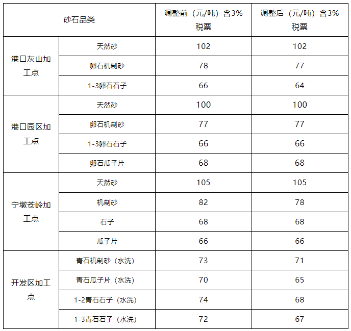 近日,寧國國控下屬子公司寧國城市建設投資有限公司寧墩分公司、寧國市中津建材貿易有限公司發(fā)布砂石價格最新調整通知。
