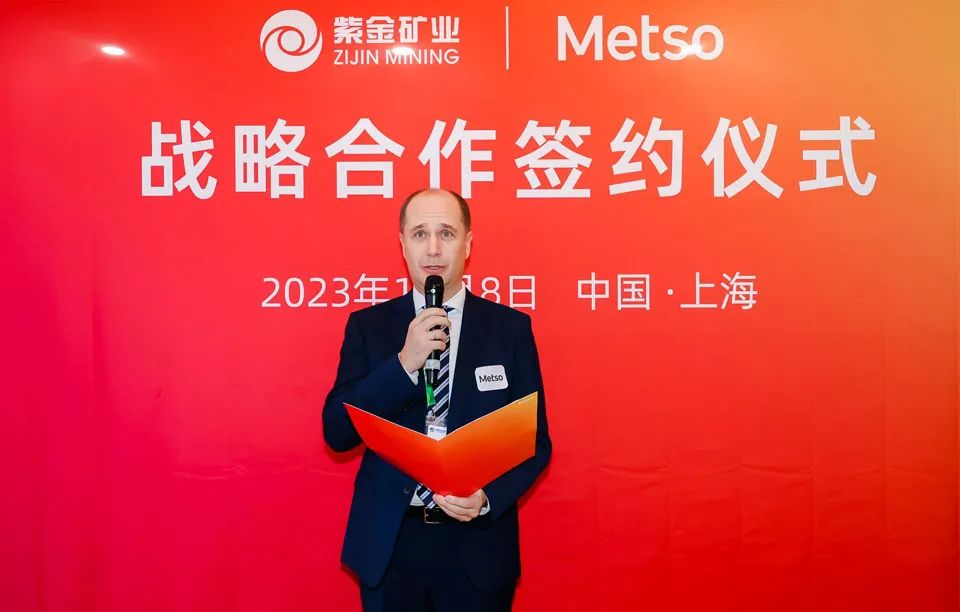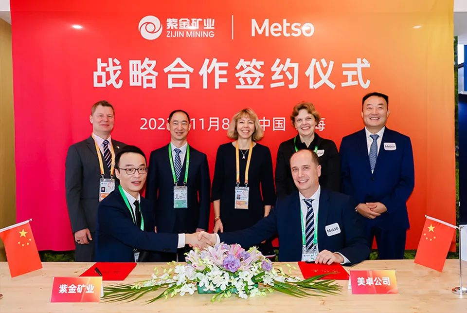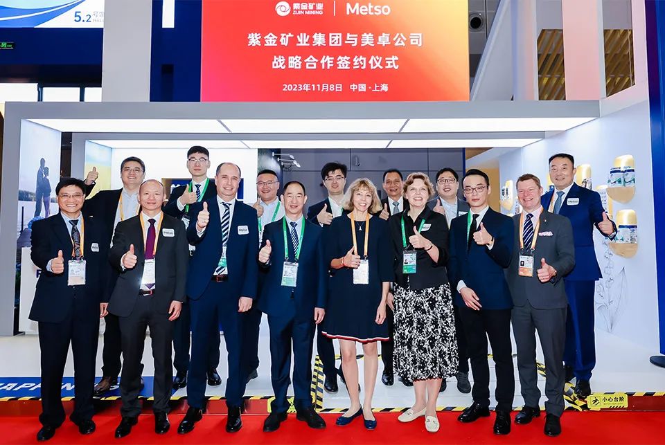 2023年11月8日,紫金礦業(yè)集團(tuán)與美卓公司在第六屆中國(guó)進(jìn)口博覽會(huì)芬蘭國(guó)家展臺(tái)簽訂了戰(zhàn)略合作協(xié)議,將共同促進(jìn)雙方在中華人民共和國(guó)境內(nèi)與境外的持續(xù)性發(fā)展。芬蘭駐滬領(lǐng)事館總領(lǐng)事Anu Vuori-Kiikeri女士,芬蘭駐中國(guó)使館商務(wù)參贊、芬蘭國(guó)家商務(wù)促進(jìn)局大中華區(qū)負(fù)責(zé)人Marko Tiesmaki先生,紫金礦業(yè)集團(tuán)執(zhí)行董事、副總裁謝雄輝先生、美卓公司首席財(cái)務(wù)官Eeva Sipila女士、美卓公司歐洲區(qū)總裁Saso Kitanoski先生、美卓公司大中華區(qū)總裁梁曉峰先生、客戶及美卓方代表出席了簽約儀式。