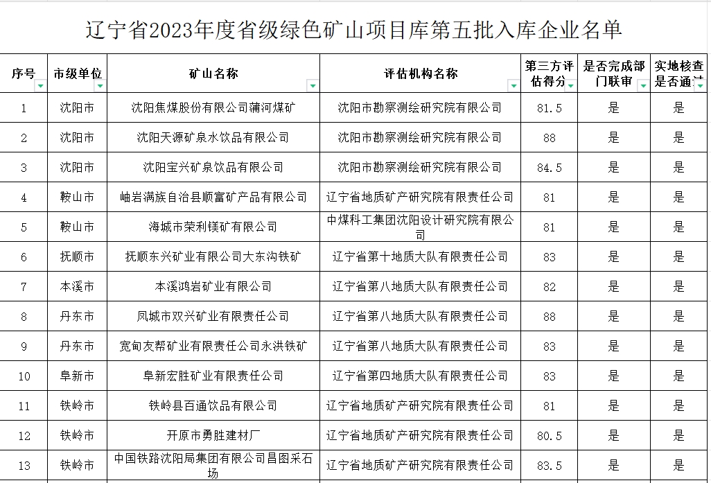 按照《遼寧省綠色礦山建設(shè)三年行動方案》和《遼寧省綠色礦山管理辦法》明確的省級綠色礦山遴選工作的相關(guān)要求,我廳組織開展了2023年度省級綠色礦山遴選評估工作。按照工作程序,依次完成了相關(guān)市自然資源管理部門推薦及第三方評估、部門聯(lián)審、實地核查等工作,充分征求了省生態(tài)環(huán)境廳和應(yīng)急廳的意見。在我廳網(wǎng)站和微信公眾號,對通過評估及核查的礦山企業(yè),進行了5個工作日(2023年11月23日至11月29日)的公示。