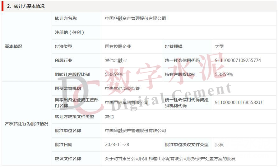 底價1052.3萬元!民和祁連山水泥5.4%國有股權(quán)轉(zhuǎn)讓