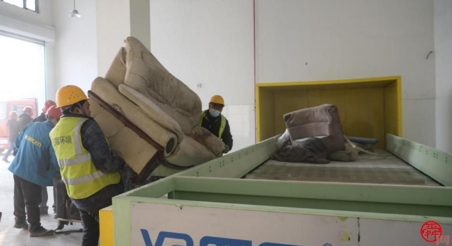 本次試運行主要為大件垃圾拆解分揀設備和裝修垃圾拆解分揀設備,其中大件垃圾拆解分揀設備主要處理沙發(fā)、床墊、家具、園林垃圾等大件垃圾,產線通過分類收集、