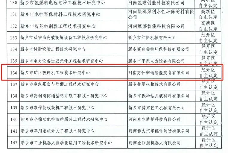 新鄉(xiāng)市礦用破碎機工程技術研究中心