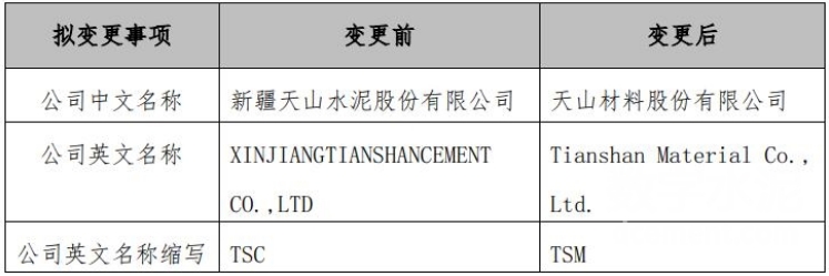 3月25日,新疆天山水泥股份有限公司發(fā)布關(guān)于擬變更公司名稱及修訂《公司章程》的公告稱,公司于2021年重組完成后成為國(guó)內(nèi)水泥/商混/骨料業(yè)務(wù)規(guī)模大、產(chǎn)業(yè)鏈較為完整、全國(guó)性布局的公司,為進(jìn)一步體現(xiàn)全國(guó)性布局和產(chǎn)業(yè)鏈延伸發(fā)展特征,公司擬變更公司名稱,本次變更已取得市場(chǎng)監(jiān)督管理部門的名稱預(yù)核準(zhǔn)。