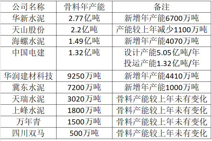 表:上市公司骨料業(yè)務(wù)產(chǎn)能情況
