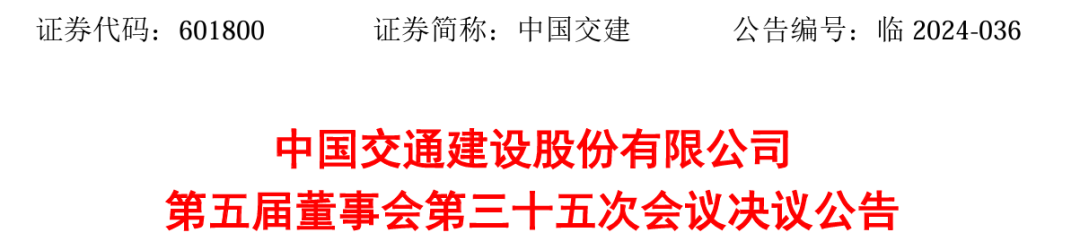 2024年6月18日,中國(guó)交通建設(shè)股份有限公司(以下簡(jiǎn)稱中交集團(tuán))發(fā)布中國(guó)交通建設(shè)股份有限公司第五屆董事會(huì)第三十五次會(huì)議決議公告。