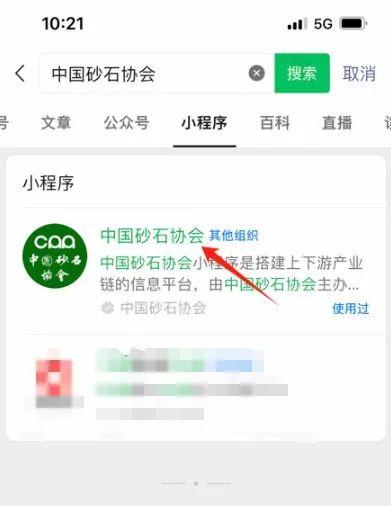 第一步:微信搜索“中國(guó)砂石協(xié)會(huì)”小程序