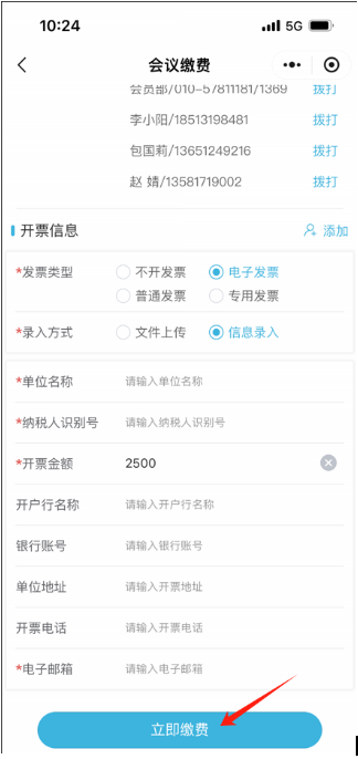 3.提前繳費(fèi)的代表,報(bào)到時(shí)直接簽到并領(lǐng)取發(fā)票。線上報(bào)名時(shí),請(qǐng)?zhí)顚懲暾l(fā)票信息;同一筆匯款需要開多張發(fā)票的,請(qǐng)務(wù)必在系統(tǒng)中備注;如使用個(gè)人名義匯款,請(qǐng)務(wù)必備注與“發(fā)票信息”中完全一致的單位名稱。現(xiàn)場(chǎng)報(bào)名繳費(fèi)的代表,請(qǐng)?jiān)敿?xì)填寫郵寄信息,發(fā)票將于會(huì)后20個(gè)工作日內(nèi)郵寄。