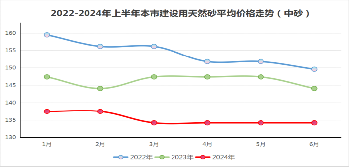 圖5:2022-2024年上半年本市建設(shè)用天然砂平均價格走勢(中砂)