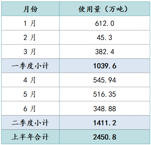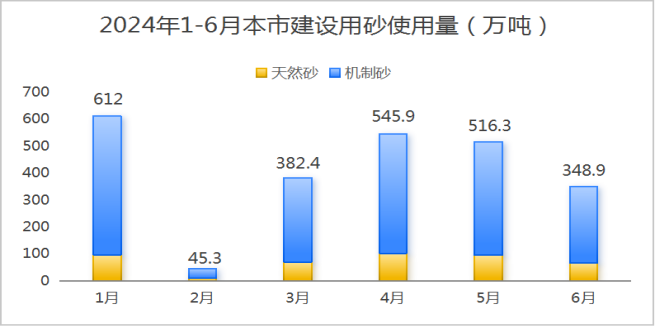 表1:2024年上半年本市建設(shè)用砂使用量匯總表