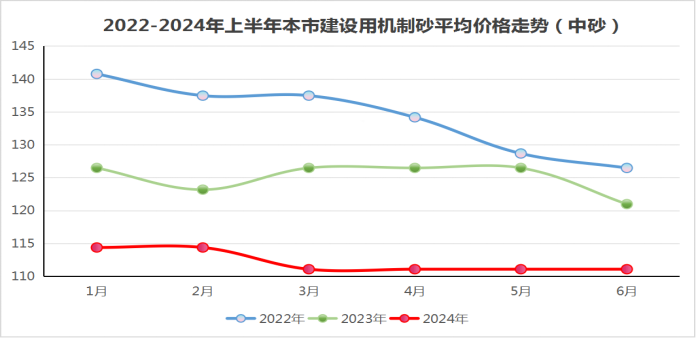 圖6:2022-2024年上半年本市建設(shè)用機制砂平均價格走勢(中砂)