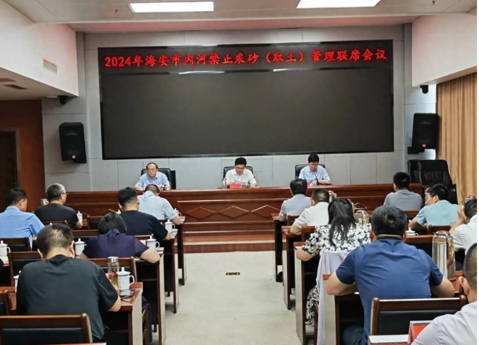 7月9日,江蘇海安市召開(kāi)全市內(nèi)河禁止采砂(取土)管理聯(lián)席會(huì)議。海安市副市長(zhǎng)周小軍出席會(huì)議并講話(huà),市政府辦副主任陳希韓主持會(huì)議,市水利局黨組書(shū)記、局長(zhǎng)陳峰對(duì)全市禁采工作進(jìn)行部署。