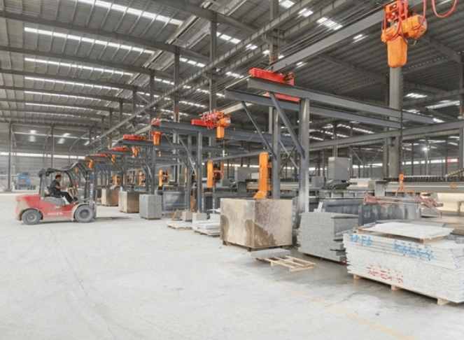 據(jù)了解,該項目分兩期建設(shè),一期占地123畝,總投資15億元,入駐企業(yè)2家,建成生產(chǎn)車間19500平方米,建設(shè)花崗巖板材及異形石材深加工生產(chǎn)線10條,可年加工花崗巖板材400萬平方米、