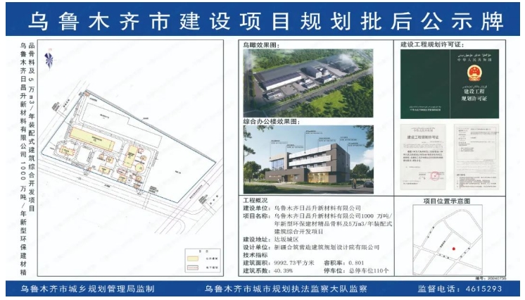 近日,烏魯木齊市人民政府發(fā)布烏魯木齊日昌升新材料有限公司1000萬(wàn)噸/年新型環(huán)保建材精品骨料及5萬(wàn)m?/年裝配式建筑綜合開(kāi)發(fā)項(xiàng)目規(guī)劃批后公示。標(biāo)志著該項(xiàng)目已經(jīng)通過(guò)了相關(guān)的審批,并且其規(guī)劃方案已經(jīng)確定,進(jìn)入實(shí)施階段。