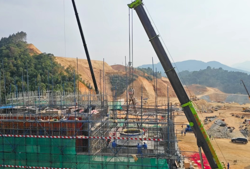 圖為首臺套大型設備安裝現(xiàn)場 據(jù)悉,該項目總投資約30.5億元,是中能建第一個超千萬噸的純商業(yè)類砂石項目,也是其儲量最大、年產(chǎn)能最高的砂石項目。兩礦區(qū)范圍內(nèi)合計可采資源量近3.64億噸,生產(chǎn)規(guī)模1600萬噸/年,2023年9月26日正式開工。 這是德慶公司項目自2024年10月下旬全面進入土建施工階段以來的一項重大進展。為順利完成項目首臺套大型設備安裝,德慶公司嚴格進行安全技術交底,提前謀劃,從吊裝方案研究、大件貨物運輸、現(xiàn)場組織協(xié)調(diào)、安全質(zhì)量保障等方面精心組織策劃,每一個細節(jié)都經(jīng)過充分的考慮和商定。德慶公司相關領導及部門現(xiàn)場督導,確保安裝萬無一失。 項目自2024年開工建設以來,面臨著征租地困難、雨季施工等諸多不利因素,在克服諸多困難后,項目建設按節(jié)點計劃順利實施,也為項目2025年建設工作提振了信心。下一步,德慶公司項目全體員工將再接再厲,以更加飽滿的狀態(tài),更加拼搏的勁頭,全力以赴開展工作,努力推進各項工程建設再上新臺階。 據(jù)悉,2024年12月19日上午,德慶公司成功競得德慶縣回龍鎮(zhèn)5宗工業(yè)用地,總面積共計272畝。該地塊將用于德慶公司簡架頭、云致沖兩礦區(qū)加工區(qū)及廊道建設,新建1600萬噸/年砂石骨料及400萬噸/年水洗砂生產(chǎn)線,計劃固定資產(chǎn)投資總額約9.5億元,預計達產(chǎn)后產(chǎn)值約10億元,增加就業(yè)崗位約200余人,增加地方稅收數(shù)千萬元,具有良好的經(jīng)濟和社會效益。此五宗地塊從征地到成功競得,也體現(xiàn)出德慶縣委、縣政府對公司的大力支持,德慶公司將全力以赴加快建設,早日投產(chǎn),惠及地方。 據(jù)了解,2023年1月,中能建(德慶)綠色建材科技有限公司分別以11.83億元、2.29億元競得(共計14.12億元)廣東省肇慶市德慶縣簡架頭、云致沖礦區(qū)兩宗建筑用花崗巖礦采礦權。兩礦區(qū)面積合計1.69平方公里,礦區(qū)范圍內(nèi)合計保有資源量15731.55萬立方米,可采資源量15365.54萬立方米。兩礦相距850米,未來具有約3億噸擴儲空間,可實現(xiàn)滾動開發(fā)。 礦區(qū)距西江配套碼頭直線距離約5公里,沿西江順流而下可覆蓋粵港澳大灣區(qū)核心市場,水運交通便利。 項目效果圖
