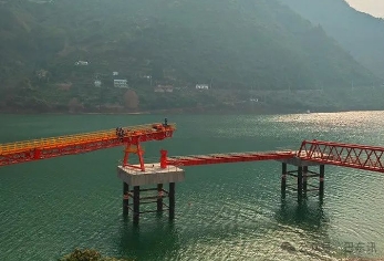 1月10日,在巴東裝配式建筑及配套產(chǎn)業(yè)項(xiàng)目東瀼口物流碼頭建設(shè)現(xiàn)場(chǎng),工人正在進(jìn)行裝船機(jī)和鋼聯(lián)橋安裝工作。