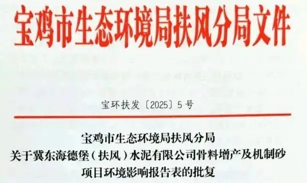 近期,陜西省寶雞市生態(tài)環(huán)境局扶風(fēng)分局發(fā)布了冀東海德堡(扶風(fēng))水泥有限公司骨料增長(zhǎng)及機(jī)制砂項(xiàng)目環(huán)境影響報(bào)告表的批復(fù)。