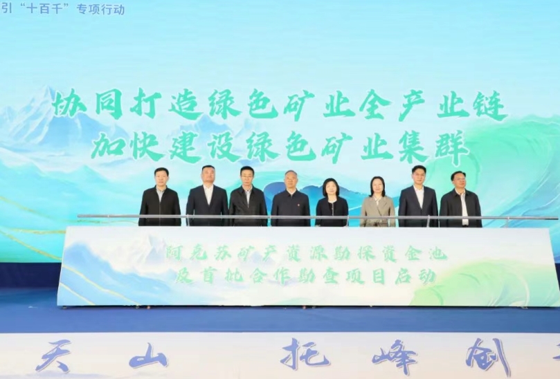 與會領(lǐng)導(dǎo)共同啟動阿克蘇礦產(chǎn)資源勘探資金池及首批合作勘查項目