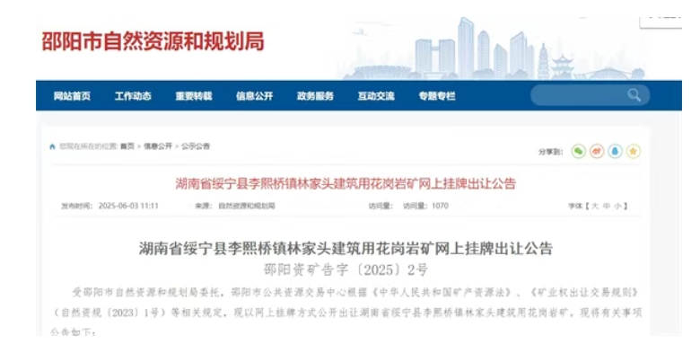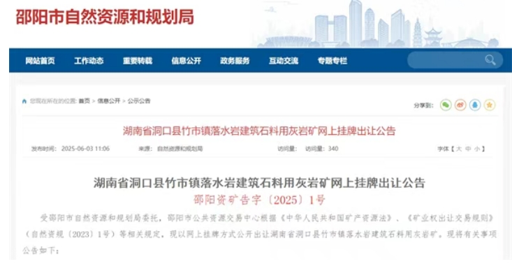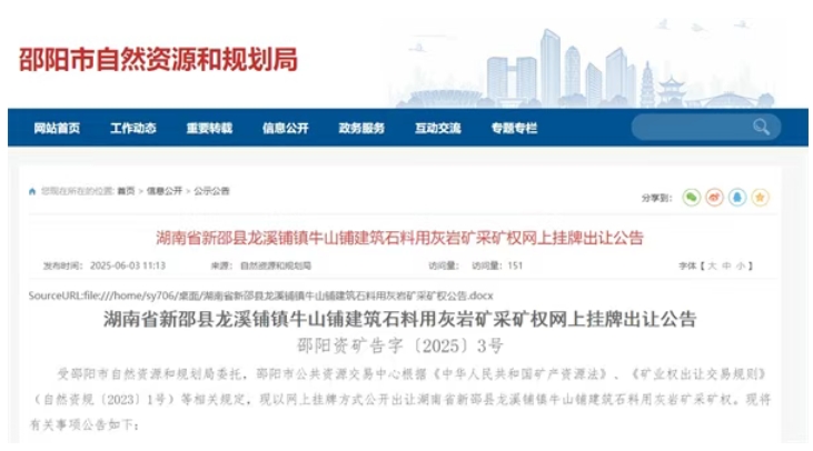 6月3日,湖南邵陽自然資源和規(guī)劃局發(fā)布3宗砂石礦掛牌出讓信息。據(jù)悉,3宗砂石礦合計(jì)資源儲(chǔ)量4570萬噸,年生產(chǎn)規(guī)模360萬噸,掛牌起始價(jià)約1.56億元。另外,3宗砂石礦均為“凈礦”出讓,競(jìng)得人還須支付“凈礦”成本合計(jì)約9644.68萬元,掛牌時(shí)間2025年7月7日-7月21日。經(jīng)計(jì)算,3宗砂石礦競(jìng)拍單價(jià)平均為5.52元/噸。 其中,湖南省洞口縣竹市鎮(zhèn)落水巖建筑石料用灰?guī)r礦年產(chǎn)能最高,180萬噸/年; 湖南省綏寧縣李熙橋鎮(zhèn)林家頭建筑用花崗巖礦競(jìng)拍資源價(jià)款最高,5.86元/噸; 湖南省新邵縣龍溪鋪鎮(zhèn)牛山鋪建筑石料用灰?guī)r礦為整合出讓,除資源價(jià)款及“凈礦”成本外,還須支付原采礦權(quán)資產(chǎn)處置價(jià)款約2704.17萬元。 上述采礦權(quán)出讓收益首次征收比例為采礦權(quán)出讓成交價(jià)款的20%,采礦權(quán)人自愿一次性繳清的除外。 湖南省洞口縣竹市鎮(zhèn)落水巖建筑石料用灰?guī)r礦保有資源量2228.4萬噸(837.7萬立方米);采礦回采率98%,可采儲(chǔ)量為2183.8萬噸(821萬方),生產(chǎn)規(guī)模180萬噸/年,擬出讓年限13.1(含礦山基建期1年),掛牌出讓起始價(jià)7644萬元,“凈礦”出讓成本4786.09萬元。經(jīng)計(jì)算,該項(xiàng)目噸成本5.57元。 湖南省綏寧縣李熙橋鎮(zhèn)林家頭建筑用花崗巖礦控制資源量1253.9萬噸(537.9萬方);采礦回采率98%,可采資源量為1205.9萬噸,其中強(qiáng)風(fēng)化花崗巖礦447.3萬噸、中風(fēng)化花崗巖礦100.4萬噸、微風(fēng)化花崗巖礦658.2萬噸。生產(chǎn)規(guī)模100萬噸/年,擬出讓年限13.1年(含礦山基建期1年),掛牌出讓起始價(jià)4197萬元,“凈礦”出讓3150.59萬元,經(jīng)計(jì)算,該項(xiàng)目噸成本5.86元。 湖南省新邵縣龍溪鋪鎮(zhèn)牛山鋪建筑石料用灰?guī)r礦保有資源量1088.4萬噸(401.6萬方);采礦回采率98%,可采資源量為1066.6萬噸(393.6萬方)。生產(chǎn)規(guī)模80萬噸/年,擬出讓年限14.3年(含礦山基建期1年),掛牌出讓起始價(jià)3735萬元,“凈礦”出讓成本1708萬元。經(jīng)計(jì)算,該項(xiàng)目噸成本5元。 另外,該項(xiàng)目為整合出讓,競(jìng)得人還須支付原采礦權(quán)資產(chǎn)處置價(jià)款2704.1668萬元。該項(xiàng)目“凈礦”成本不包括露天采場(chǎng)、生產(chǎn)加工區(qū)等配套設(shè)施的土地租賃。