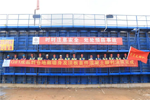 近日,由中交第四航務工程局有限公司(簡稱“中交四航局”)建設的廣東陽江陽西礦業(yè)項目Q81成品料倉地廊墻身及頂板首件混凝土順利完成澆筑,標志著陽西礦業(yè)項目正式進入地廊主體結構施工階段。