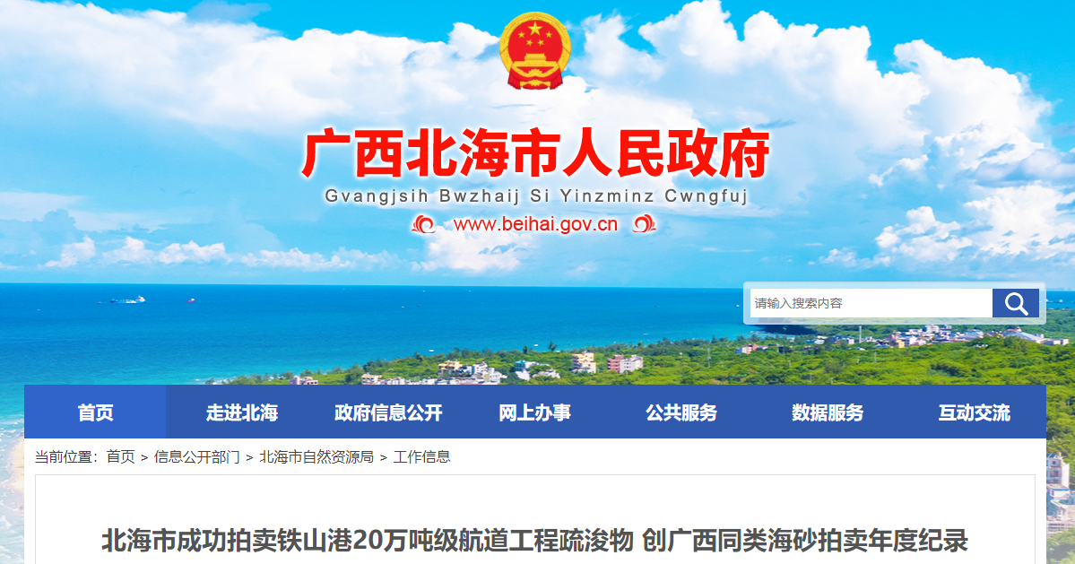 近日,北海市在市公共資源交易中心組織完成北海港鐵山港20萬噸級航道工程(外海至啄羅作業(yè)區(qū)段)疏浚物(海砂)拍賣工作,本次拍賣實現(xiàn)資源量與成交基礎(chǔ)規(guī)模雙突破,創(chuàng)2025 年廣西區(qū)內(nèi)同類海砂拍賣紀錄,為全區(qū)“工程建設(shè)+礦產(chǎn)資源利用”協(xié)同發(fā)展提供實踐參考。