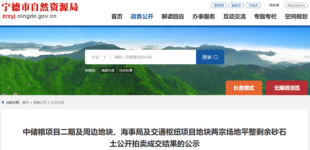 近日,寧德市自然資源局發(fā)布中儲糧項目二期及周邊地塊、海事局及交通樞紐項目地塊兩宗場地平整剩余砂石土公開拍賣成交結(jié)果的公示。