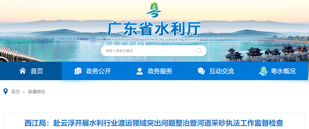 近日,為做好涉河湖突出問題整治工作,廣東省西江流域管理局赴云浮市開展水利行業渡運領域突出問題整治工作暨加強河道采砂執法工作監督檢查。