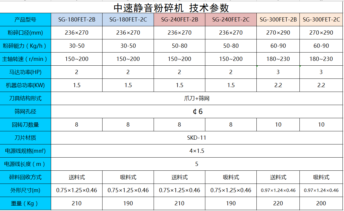 ●設計獨特堅固耐用的刀。刀采用SKD-11材質,中間有凹槽的方形動刀,確保其在重磨后仍然保持固定的切割曲線和切割間隔,有利于提高回收效率。動刀的四個角可交替使用。
