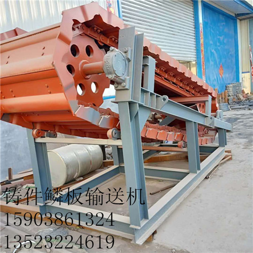 鱗板輸送機(jī)是一種通用型固定式機(jī)械化輸送設(shè)備,它用鋼板做運(yùn)載槽體可用于大量散狀物料及單件重物的輸送;尤其適用于大塊的、沉重的、灼熱的以及腐蝕性的物料,鱗板輸送機(jī)用于鑄造車間灼熱鑄件的輸送并能在輸送過(guò)程中同時(shí)完成清除澆冒口、冷卻、干燥、加熱、清洗及分類等工藝工程,廣泛應(yīng)用于機(jī)械、鑄造、冶金、化工、建材、動(dòng)力、礦山等工業(yè)部門。