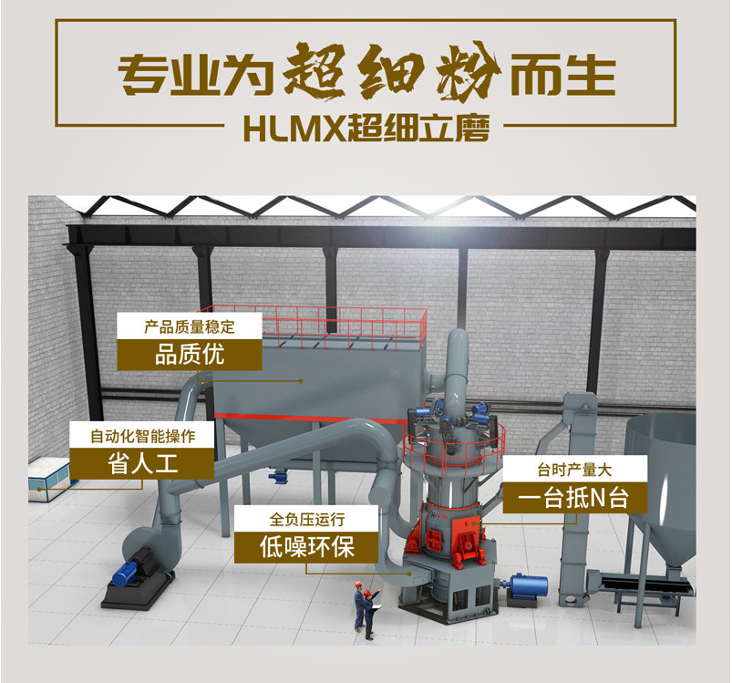 環(huán) 保: HLMX立磨整個系統震動小,噪音低;系統整體密封,全負壓運行,無粉塵外溢,基本可實現無粉塵車間;立式磨技術及裝備是我國大力倡導的節(jié)能降耗新技術,有利于提升企業(yè)在本區(qū)域乃至粉體行業(yè)領域的競爭實力