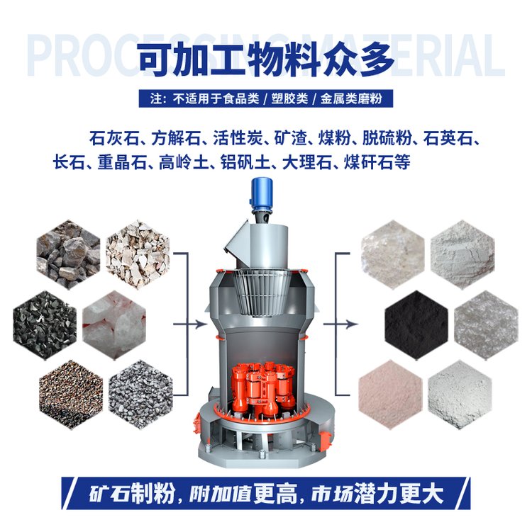適用范圍:石灰石、方解石、大理石、重鈣、高嶺土、重晶石、膨潤土、葉臘石等非金屬礦產品的超細粉磨加工,可為造紙、涂料、塑料、橡膠、顏料、油墨、PVC等行業(yè)提供高品質的填料和添加劑