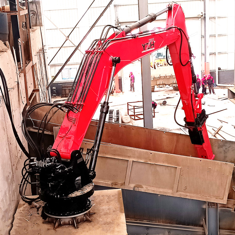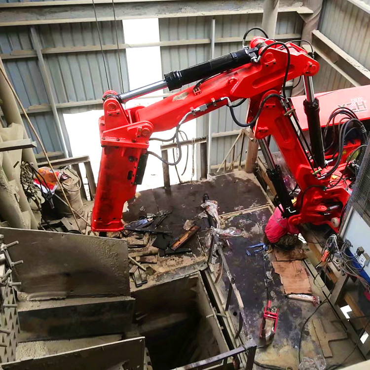 大型礦山用固定式破碎工作臂系統(tǒng)是集機(jī)、電、液于一體的大功率破碎、拆除作業(yè)礦山設(shè)備。固定式破碎錘主要由4個(gè)大部分組成:液壓破碎錘(破碎巖石)、大小臂作業(yè)系統(tǒng)(斗桿)、液壓油站(動(dòng)力來(lái)源)以及控制器(操作系統(tǒng))。本產(chǎn)品為固定式破碎工作臂系統(tǒng),主要用于:礦山、采石場(chǎng),砂石骨料場(chǎng)、冶金鑄造廠、水泥廠、化工廠等露天地上施工環(huán)境或地下礦井溜井機(jī)口和格篩處,對(duì)大塊礦石進(jìn)行二次免爆破碎,以便運(yùn)輸及提升。且設(shè)備已通過(guò)歐盟認(rèn)證、ISO9001質(zhì)量認(rèn)證,質(zhì)量有保證。機(jī)器可遠(yuǎn)程操作,可以使用遠(yuǎn)程操作臺(tái),遙控器進(jìn)行遠(yuǎn)程操控,這也可以有效的保證操作人員的安全。機(jī)械操作簡(jiǎn)單易學(xué),降低了操作難度,同時(shí)也避免了因操作錯(cuò)誤而造成的不可逆的影響。