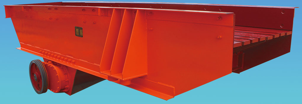 振動(dòng)喂料機(jī)用于破碎設(shè)備的連續(xù)、均勻喂料,并對(duì)物料進(jìn)行粗篩分;采用雙激振器的結(jié)構(gòu)特點(diǎn),保證設(shè)備能承受大塊物料下落的沖擊,給料能力大。在生產(chǎn)流程中可以把塊狀、顆粒狀物料從貯料倉中均勻、定時(shí)、連續(xù)地給到受料裝置中去,從而防止受料裝置因進(jìn)料不均而產(chǎn)生死機(jī)的現(xiàn)象,延長了設(shè)備使用壽命。給料機(jī)可分為鋼板結(jié)構(gòu)和篦條結(jié)構(gòu),鋼板結(jié)構(gòu)的給料機(jī)多用于砂石料生產(chǎn)線,將物料全部均勻地送入破碎設(shè)備;篦條結(jié)構(gòu)的給料機(jī)可對(duì)物料進(jìn)行粗篩分,使系統(tǒng)在配制上更經(jīng)濟(jì)合理,在破碎篩分中已作為必不可少的設(shè)備。