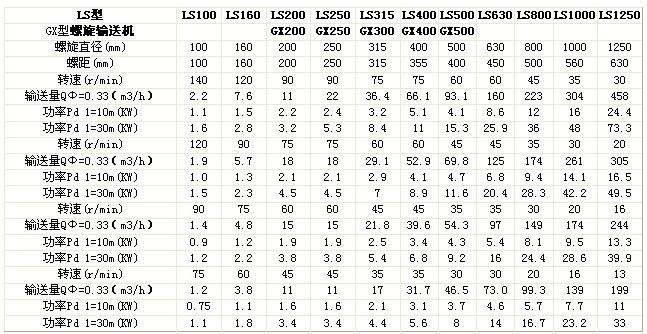 LS螺旋輸送機(jī)主要技術(shù)參數(shù):