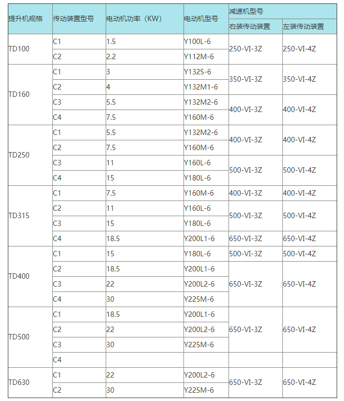 TD型斗式提升機(jī)(皮帶式斗式提升機(jī))由運(yùn)行部分(料斗與牽引膠帶),帶有傳動滾筒的上部區(qū)段,帶有拉緊滾筒的下部區(qū)段,中間機(jī)殼,驅(qū)動裝置,逆止制動裝置等組成,適用于向上輸送松散密度ρ<1.5t/m3粉狀、粒狀和小塊狀的無磨琢性和半磨琢性散狀物料,如煤、砂、焦末、水泥、碎礦石等。 TD提升機(jī)結(jié)構(gòu)形式為:TD型斗式提升機(jī)的傳動裝置有兩種形式分別配有YZ型減速器ZQ(或YY)型減速器。YZ型軸減速器直接裝在主軸軸頭上,省去了傳動平臺、聯(lián)軸器等,使結(jié)構(gòu)緊湊、重量輕,而且其內(nèi)部帶有異型輥逆止器,逆止可靠。該減速器噪音低,運(yùn)轉(zhuǎn)平穩(wěn),并隨主軸浮動,可消除安裝應(yīng)力。