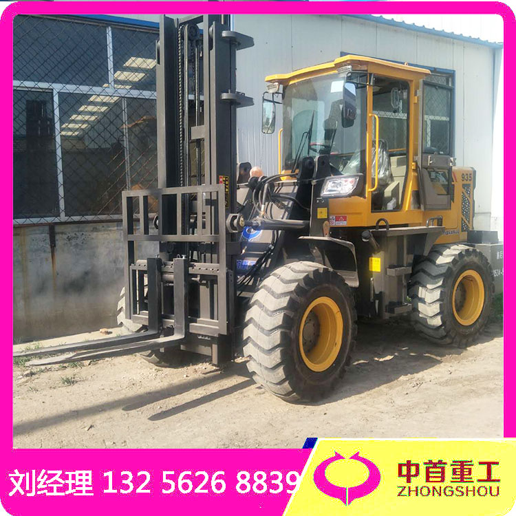 中首重工越野叉車的速度高于普通叉車,目前已發(fā)展到40km/h,其機(jī)動性顯而易見;越野叉車發(fā)動機(jī)功率大,采用全輪驅(qū)動和越野輪胎,因而能夠在臣陵、山地、灘頭、沙地、雪地、冰上及泥濘道路上行駛,具有良好的越野性能;越野叉車車架有邊梁式相中部鉸接式幾種,越野叉車門架有否直門架式、液壓伸縮臂式和連桿前移式等多種,無論哪一種,都能確保作業(yè)中的可靠性。
