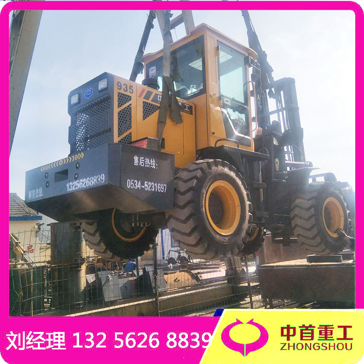 如:軟土、草地、涉水、叢林、沙漠、山地、礦山等崎嶇路面情況下物料的裝卸,碼垛、短途運輸?shù)茸鳂I(yè)。還可加裝輪胎抱裝設(shè)備,進(jìn)行大型礦山機(jī)械輪胎的更換還可配置各種異型屬具。