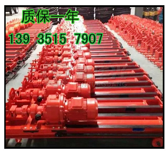 開孔時,先起動電動機,待轉運正常后扳動操縱器的推進手把。使其得到適當的推進力,然后再扳動控制沖擊器的手把到工作位置。鑿巖工作以后,可以打開水閥,使氣水混合物保持在有適當的比例。進行正常的鑿巖工作。當推進工作使缷桿器移動到與托釬器相碰時,為鉆完一根鉆桿。要停止電動機運轉和停止給沖擊器送氣、送水、把叉子插到托釬器的鉆桿槽中,使電機反轉滑板后退,使接頭與鉆桿脫開,再接第二根鉆桿,按此下你循環(huán)連續(xù)工作。