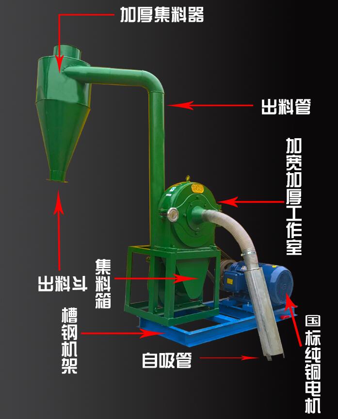 350型粉碎機(jī)主要工作零件為安裝的轉(zhuǎn)子上的扁齒,園齒可以粉碎各種顆粒原料,是目前廣泛采用的經(jīng)濟(jì)粉碎設(shè)備,具有體積小、重量輕,安裝、操作、維修簡(jiǎn)便,生產(chǎn)效率高等諸多優(yōu)點(diǎn)。 齒爪式粉碎機(jī)主要有上機(jī)體、機(jī)蓋、轉(zhuǎn)子總成、篩網(wǎng)、喂料裝置、機(jī)架等六部分組成,機(jī)體和轉(zhuǎn)子總成共同形成粉碎室,轉(zhuǎn)子總成室主要工作部件,物料的粉碎就在粉碎室完成。當(dāng)物料進(jìn)入粉碎室后,在園齒和扁齒的部斷打擊及揉撞作用下,迅速破碎成細(xì)粉和漿狀,在離心力和氣流作用下,通過(guò)篩孔經(jīng)出料口排出。 本機(jī)加工范圍廣,它既能粉碎玉米、小麥、豆類(lèi)、雜糧;葉殼等糧食及飼料,又能粉碎石膏、鉛粉、滑粉、稀土、化工、陶土、煤炭等低硬度礦物質(zhì)等,還可以粉碎多種中藥材。本機(jī)可用電機(jī)和柴油機(jī)等配套使用。