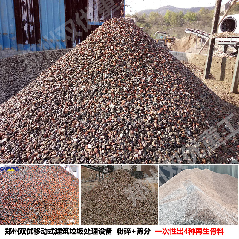 鄭州雙優(yōu)重工移動破碎站優(yōu)勢在于機動靈活,能直接深入拆遷現(xiàn)場,輕松實現(xiàn)就地“變廢為寶”,加快建筑垃圾資源化利用的速度,同時節(jié)省了一筆運輸費用,是目前拆遷工程“鐘愛”的一套設(shè)備,其中采用智能抑塵降噪系統(tǒng),對其場地?zé)o任何要求。采用多級封閉式滾筒篩可自動篩分出4種不同粒徑的再生骨料,且應(yīng)用較為廣泛。