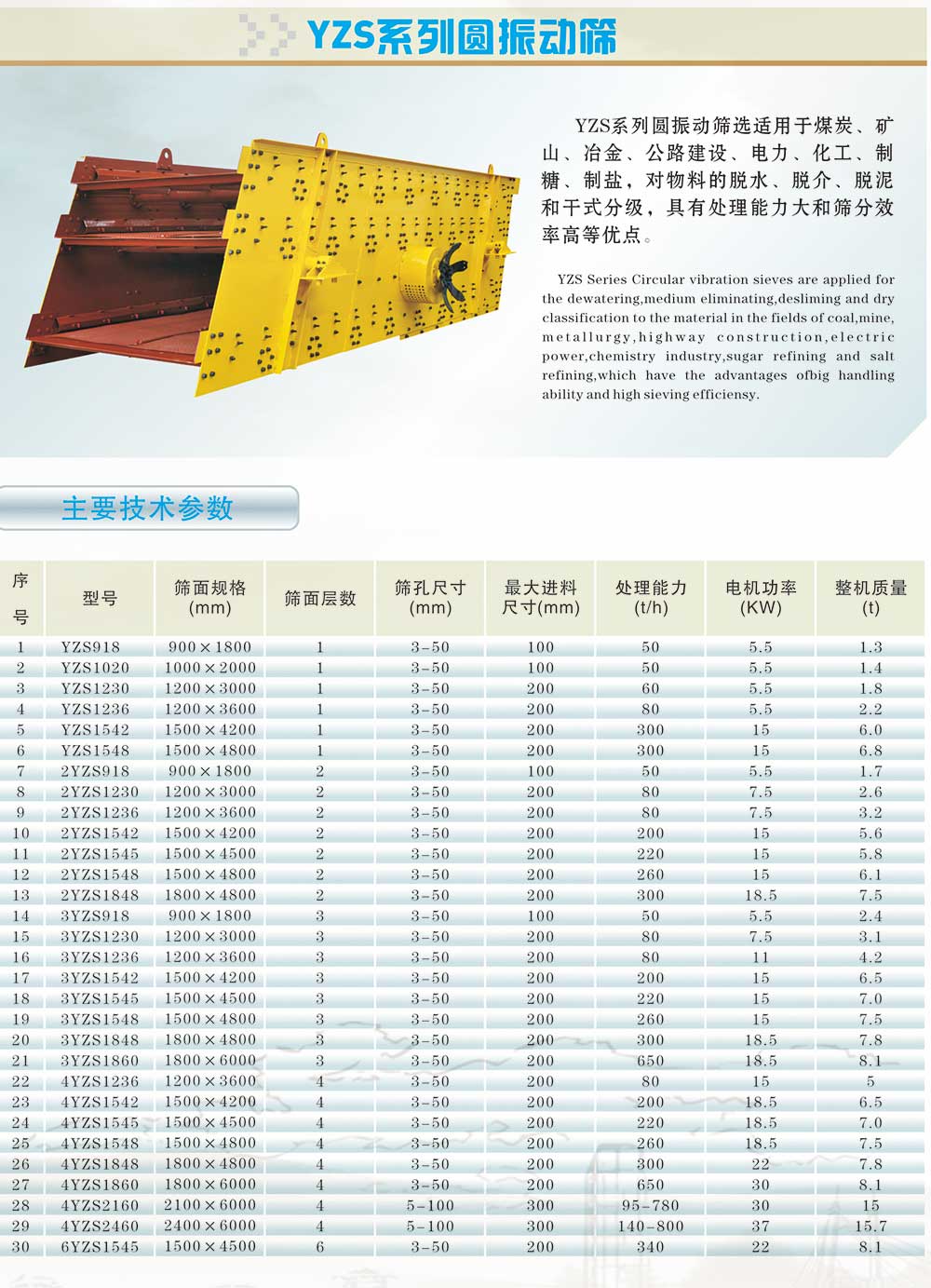 | 您當(dāng)前位置:首頁(yè) >> 產(chǎn)品庫(kù) >> 振動(dòng)篩 >> YZS系列圓振動(dòng)篩 |