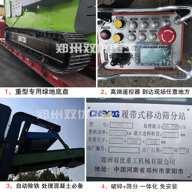 雙優(yōu)生產(chǎn)的時(shí)產(chǎn)260t建筑垃圾粉碎站也叫新型移動(dòng)式建筑垃圾破碎站,是根據(jù)環(huán)境保護(hù)研發(fā)出的新成果,自帶有智能抑塵工藝,能有效減少塵土飛揚(yáng),配置重型履帶底盤,穩(wěn)定行走,自由轉(zhuǎn)場(chǎng),不需要對(duì)建筑垃圾進(jìn)行轉(zhuǎn)運(yùn),配置的4層篩子能夠?qū)⑵扑楹蟮奈锪虾Y分成4種不同細(xì)度的骨料,用于各種基礎(chǔ)建設(shè)中或生產(chǎn)免燒磚等。