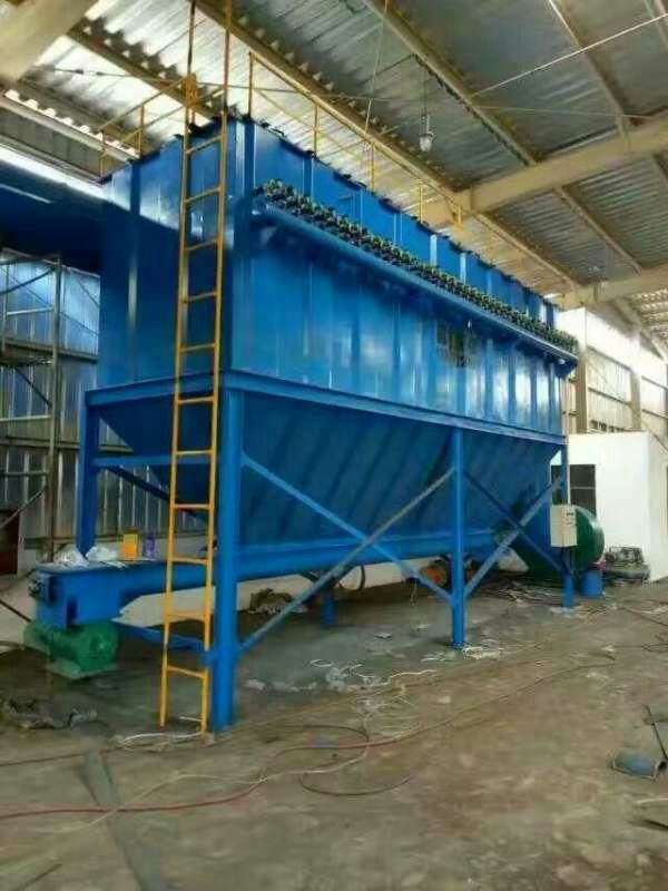布袋式除塵器是一種干式濾塵裝置,含塵氣體由除塵器下部進(jìn)氣管道,經(jīng)導(dǎo)流板進(jìn)入灰斗時(shí),由于導(dǎo)流板的碰撞和氣體速度的降低等作用,粗粒粉塵將落入灰斗中,其余細(xì)小顆粒粉塵隨氣體進(jìn)入濾袋室,由于濾料纖維及織物的慣性、擴(kuò)散、阻隔、鉤掛、靜電等作用,粉塵被阻留在濾袋內(nèi),凈化后的氣體逸出袋外,經(jīng)排氣管排出。濾袋上的積灰用氣體逆洗法去除,清除下來(lái)的粉塵下到灰斗,經(jīng)雙層卸灰閥排到輸灰裝置。濾袋上的積灰也可以采用噴吹脈沖氣流的方法去除,從而達(dá)到清灰的目的,清除下來(lái)的粉塵由排灰裝置排走。