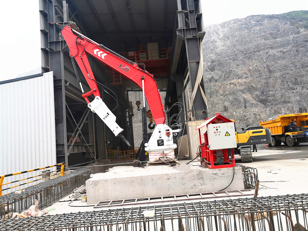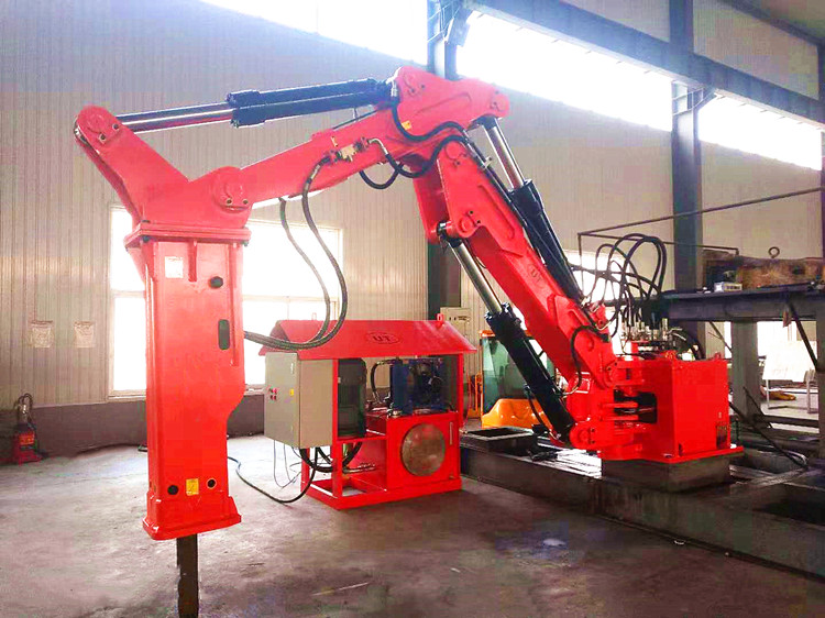 元征行生產(chǎn)金礦格篩破碎機(jī)被叫做料口碎石機(jī)械手,是集機(jī)、電、液于一體的大功率破碎、拆除作業(yè)礦山設(shè)備。可固定在料倉一側(cè),既能破碎料倉、給料機(jī)及機(jī)口處大的石料,又能替代危險(xiǎn)性高的人工手動清理,可以使生產(chǎn)順暢,是輔助破碎機(jī)料口礦石破碎給料的理想設(shè)備。