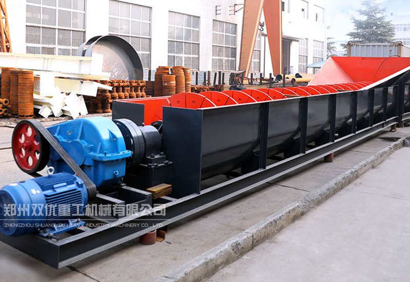 通過螺旋洗砂機+輪式洗砂機對篩分出來的砂進行清洗,洗砂機的結(jié)構(gòu)能夠防止濺水,其大量溢流結(jié)構(gòu)可以滿足大流量洗砂,配置物料溜槽能夠防止沖刷氣泡以及物料堆積,經(jīng)過脫水篩就可以得到細(xì)砂,經(jīng)過皮帶輸送機輸送到細(xì)砂堆積處。污水通過細(xì)砂回收系統(tǒng)后進入泥漿收集池,通過藥劑系統(tǒng)中的絮凝劑通過攪拌與泥漿收集池中的泥漿泵送到深錐泥漿分離罐中發(fā)生反應(yīng),混合后污泥和清水發(fā)生了分離和沉淀。清水進入清水池中,而絮凝后的泥漿通過專 用泵進入板框式壓濾機中進行固液分離。通過框板式壓濾機進行擠壓,擠壓后的干泥餅運往指定區(qū)域,清水通過壓濾機排出循環(huán)使用。