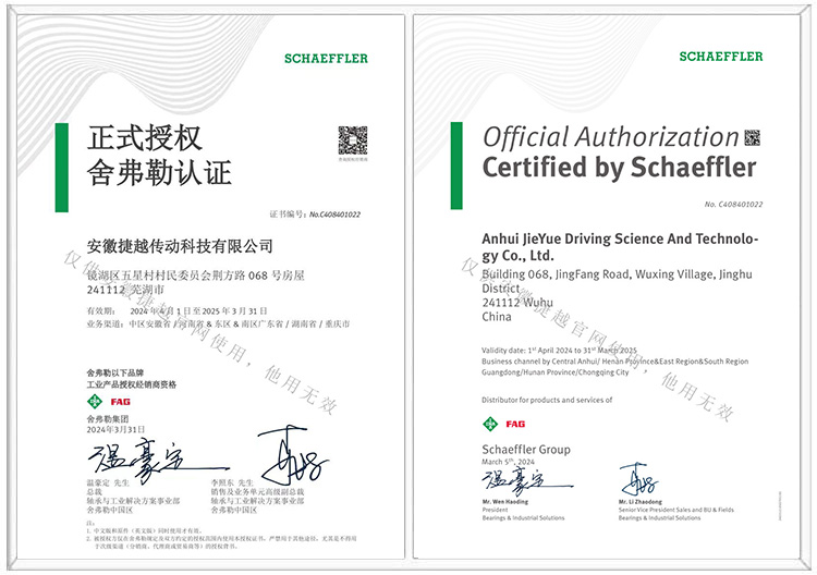 江蘇捷越貿(mào)易有限公司是安徽捷越傳動科技有限公司的下屬子公司,安徽捷越傳動科技有限公司作為一級授權經(jīng)銷商,多年來一直專注FAG/INA軸承的銷售與服務,主營立磨軸承、減速機軸承、輥壓機軸承、回轉(zhuǎn)窯軸承、破碎機軸承等FAG/INA軸承。我們的宗旨是為員工和客戶提供超預期的滿意和服務,在長期跟隨企業(yè)快速發(fā)展時,不僅收獲財富與成長,也收獲溫馨和快樂。