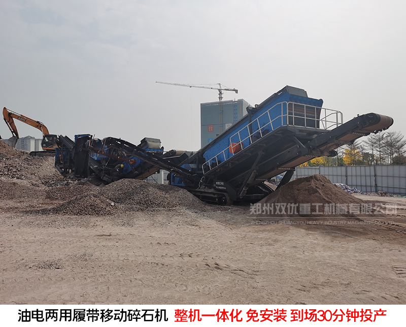 鄭州雙優(yōu)重工工程師一般推薦客戶反擊式移動(dòng)破碎機(jī),如,要打造小型臨時(shí)石子場(chǎng)的話,一臺(tái)即可。移動(dòng)破碎機(jī)集破碎、除鐵、篩分、輸送于一體,可直接開(kāi)赴作業(yè)現(xiàn)場(chǎng),無(wú)需復(fù)雜基礎(chǔ)配置,節(jié)省了場(chǎng)地建設(shè)和搬遷成本。其靈活機(jī)動(dòng)、作業(yè)效率高,特別適用于處理分散、需頻繁轉(zhuǎn)場(chǎng)的廢棄混凝土塊。